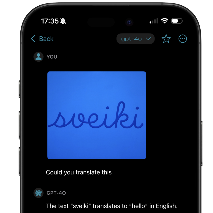 Some reasoning models may not support image inputs and will return an error. Images are resized before sending to the API and are seamlessly synced with iCloud.
