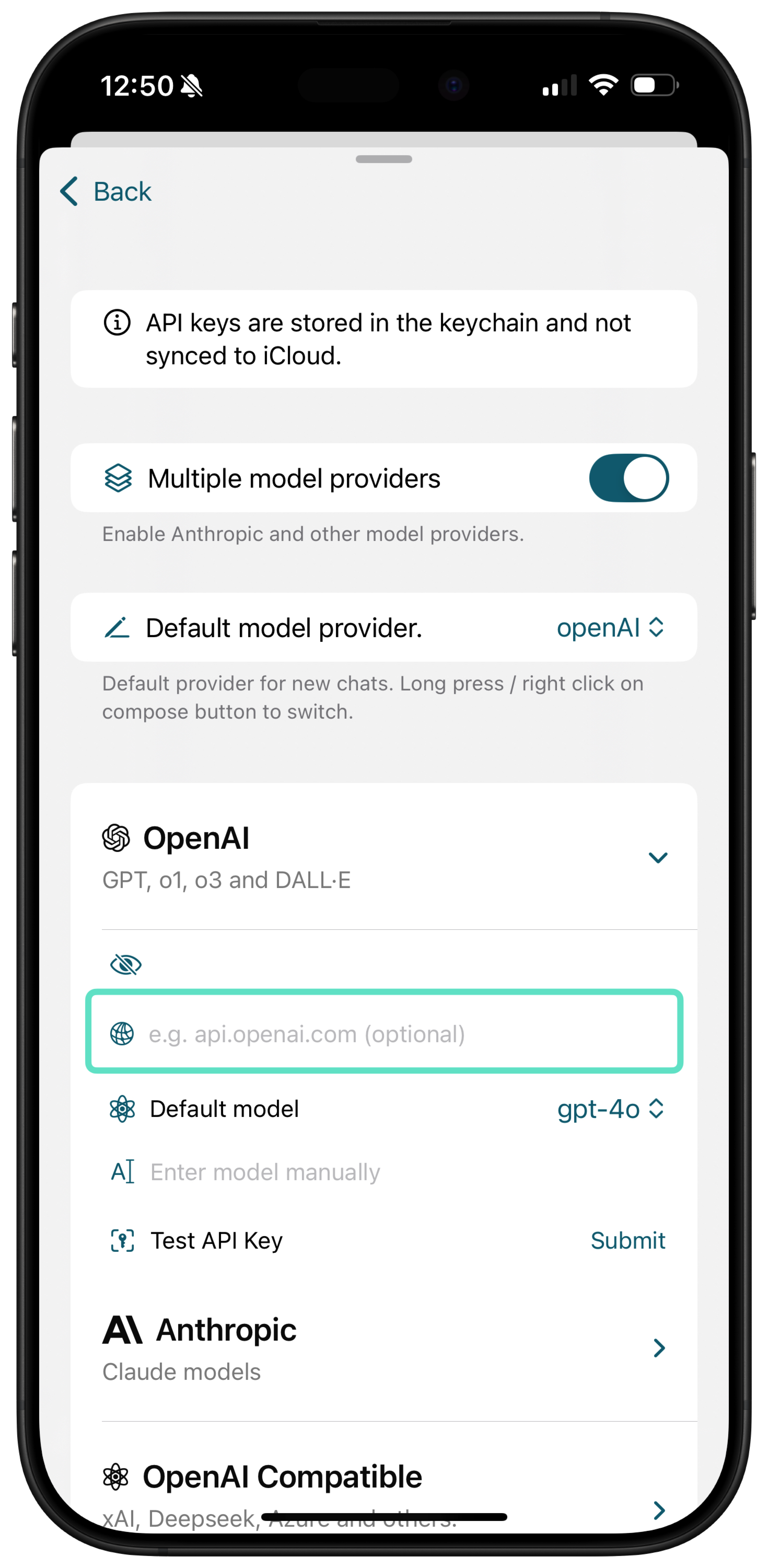 custom OpenAI compatible API (e.g. xAI Grok API, DeepSeek, TogetherAI, Azure, etc) with text and vision support